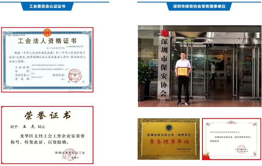 榮獲2017-2023年度深圳市公安局優秀保安公司,深圳市保安協會常務理事單位(十大常務理事單位之一)